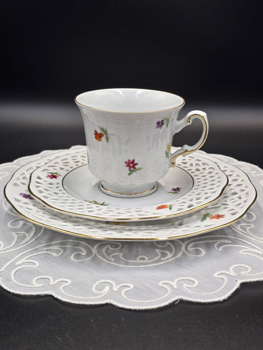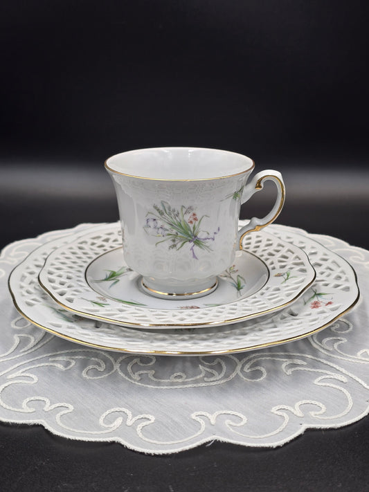 Burg Lindau porcelianinis trio su gėlėmis