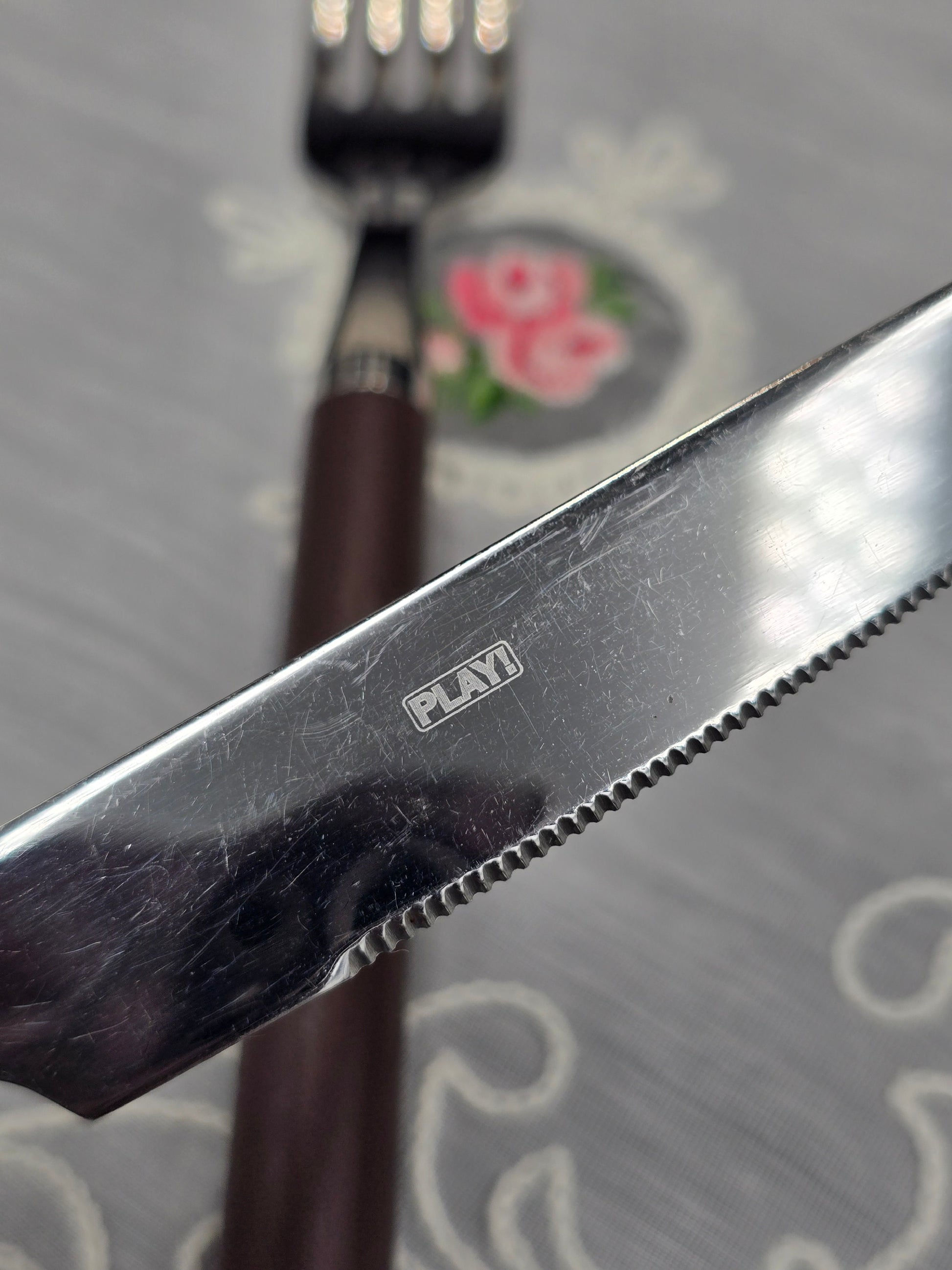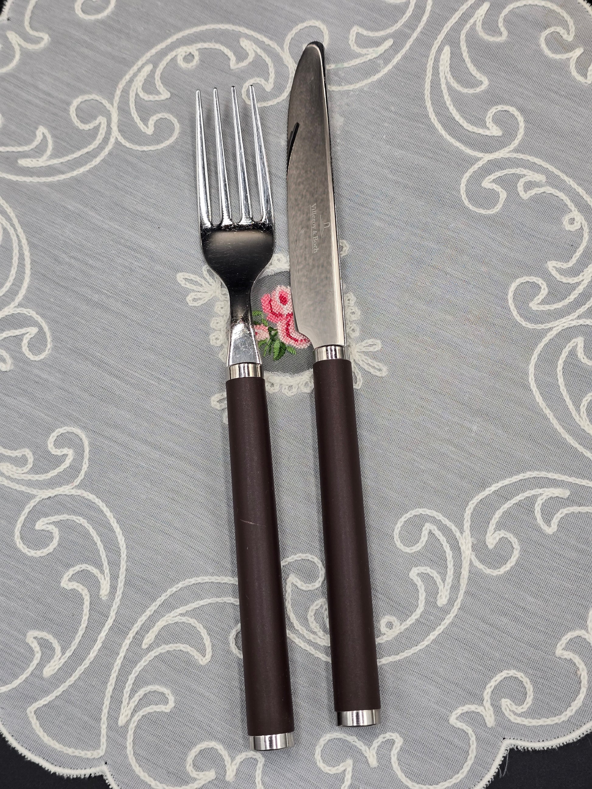 Villeroy & Boch stalo įrankiai vienam - peilis ir šakutė. Kolekcija ,, Play! Chocolate Brown ''. Įrankiai pagaminti iš poliruoto 18 / 10 nerūdijančio plieno su šokolado spalvos plastikinėmis rankenomis. Peilis turi dantukus, todėl lengva atpjauti maistą. Tinkami plauti indaplovėje.
